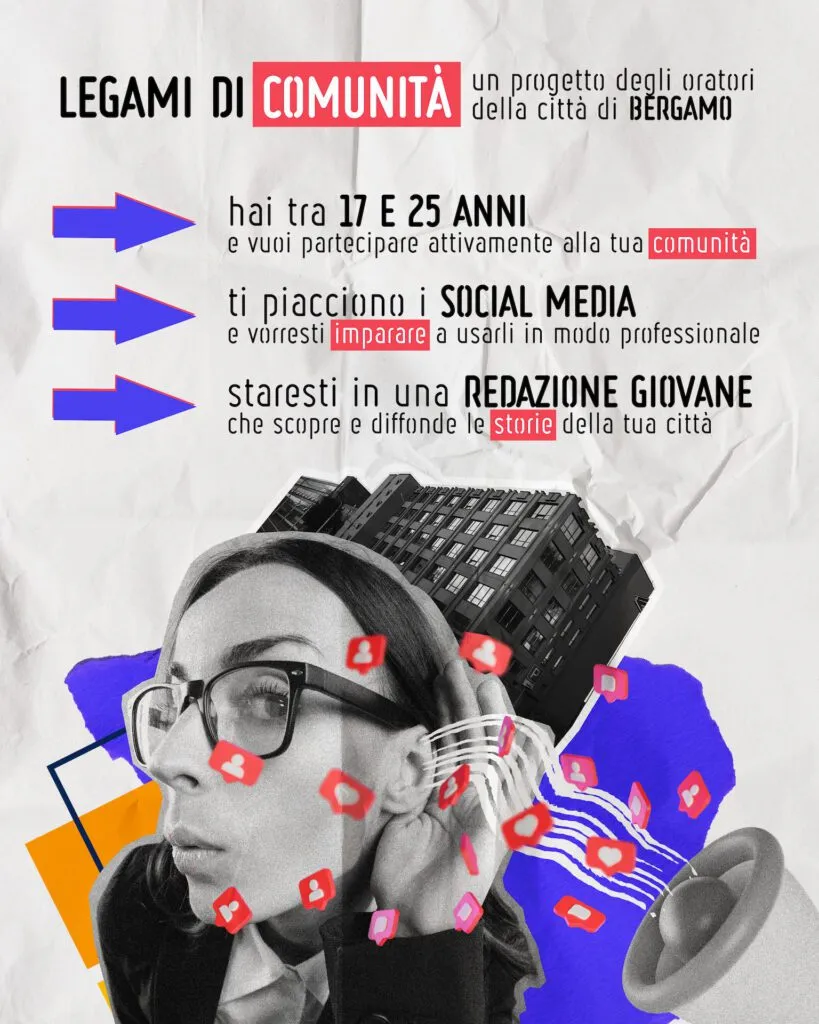 Gli oratori della città di Bergamo propongono un percorso di formazione e laboratoriale per giovani dai 17 ai 25 anni attratti dai social e appassionati alla comunità.